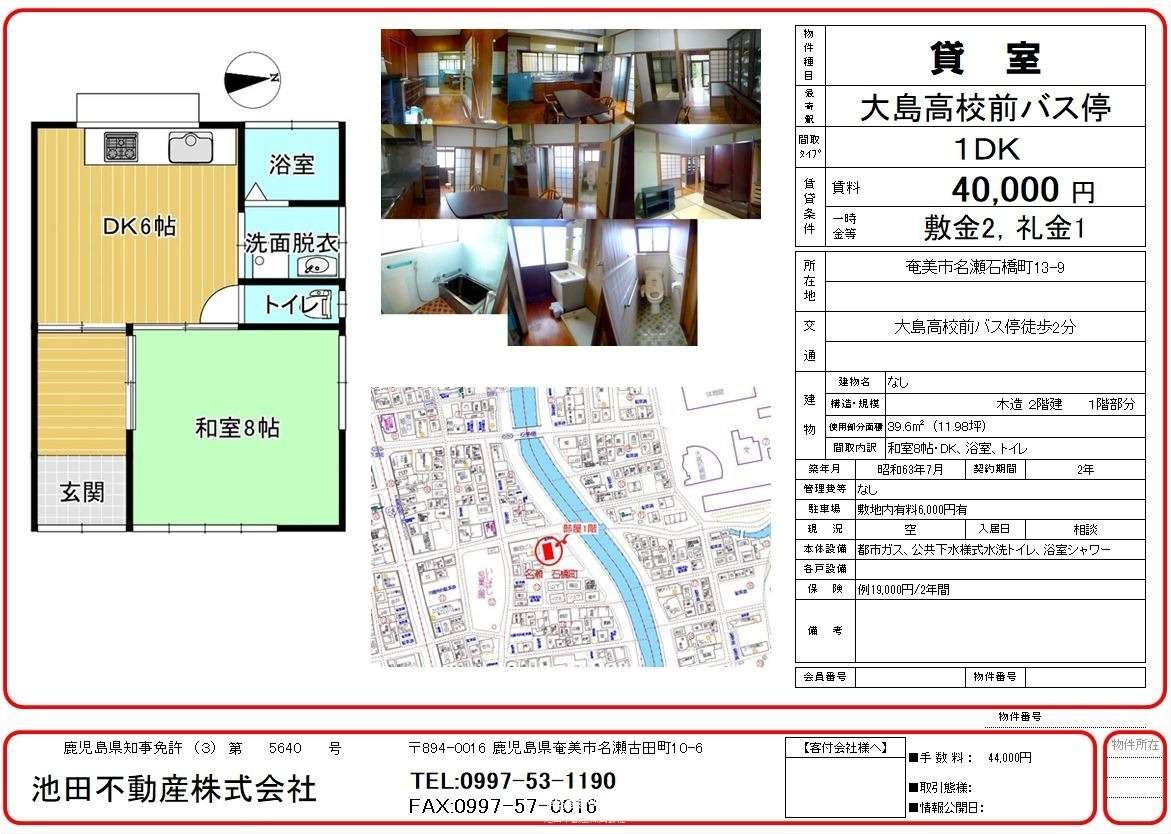 賃貸一戸建て奄美市名瀬石橋町 1DK 1階