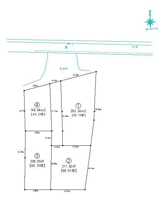 | 価格備考 | ①88.70坪(293.24㎡) 1950万円 ②64.01坪(211.62㎡) 1280万円 ③60.75坪(200.85㎡) 1215万円 ④45.23坪(149.84㎡) 1085万円 ※分筆費用、買主負担となります。 一区画(約35万円 予定) | ||